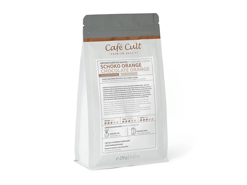 Café Aromatizado Chocolate y Naranja DESCAFEINADO 250gr. en grano.
