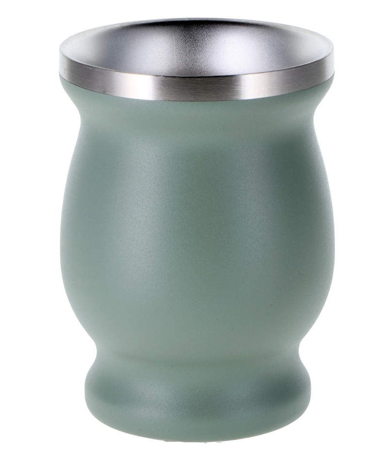 «Calabaza» o jarra para mate de acero inoxidable de doble pared y de 240 ml. de capacidad. Muy fácil de manejar (no necesita curación) y sencilla limpieza.