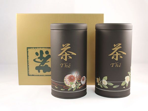 Precioso juego de botes japoneses de 100 gramos, bellamente decorados sobre fondo negro mate. Se sirven en caja de regalo.