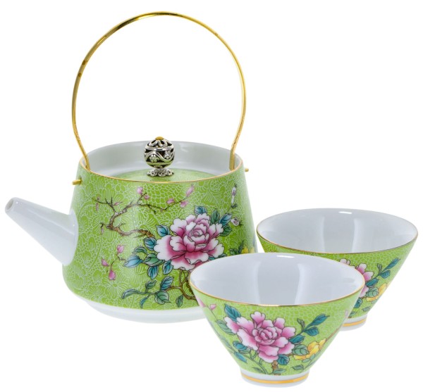 Juego de té «Yazhen» tetera 0,24l + 2 cuencos 0,07l (40156)VERDE ,porcelana Gonfu, pintura Ling