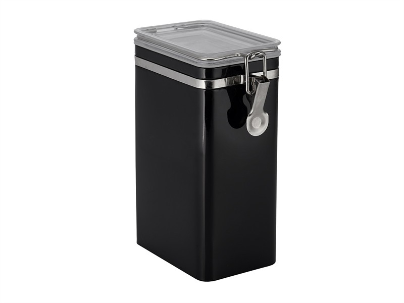 Lata rectangular «Loreen» con tapa cierre clip, negra.