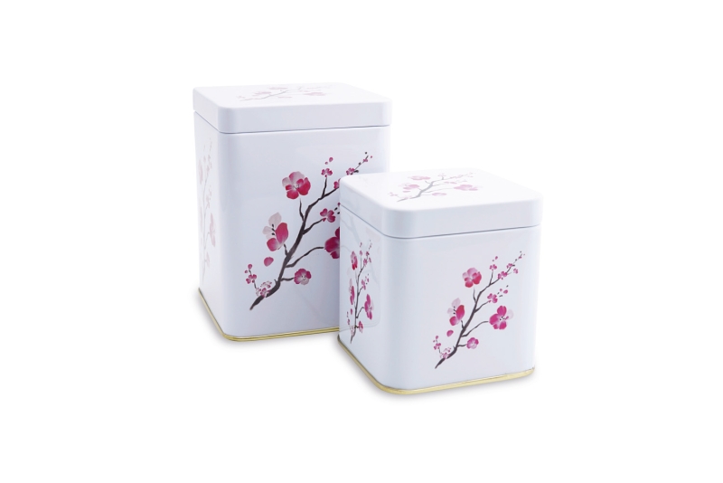 Lata «Cherry Blossom» de 100 gr. de capacidad aproximada y medidas 7,7 x 7,7 x 9,8 cm.