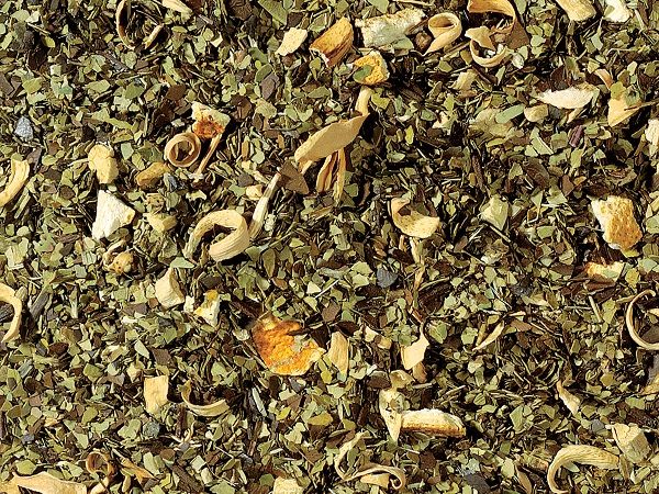 Ingredientes: yerba mate verde y tostada, raíz de regaliz, cáscara de naranja y flores, aromas naturales.