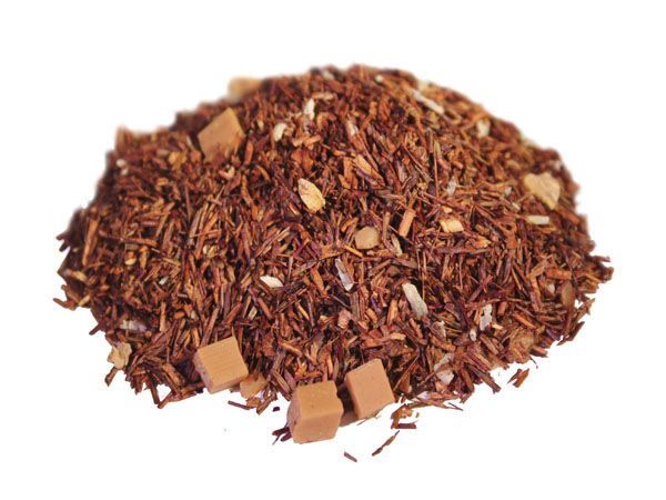 Ingredientes: Rooibos tea, crema de caramelo (azúcar, leche condensada, glucosa, mantequilla), aroma, ralladura de coco, trozos de almendra, trozos de jengibre, granulado de yoghurt liofilizado (yoghurt de leche desnatada, azúcar, malta y acido cítrico).