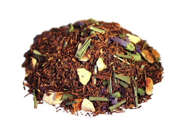 Rooibos, raspaduras de naranja y limón, flores de maíz.