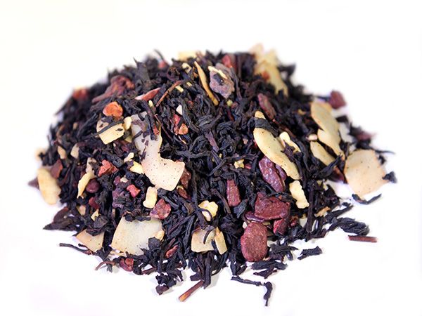 Ingredientes: té negro (65%), chips de chocolate (azúcar, granos de cacao, mantequilla de cacao, cacao en polvo, lecitina de soja), chips de chocolate blanco (azúcar, mantequilla de cacao, leche en polvo, lecitina de soja), trozos de cacao y de coco, aroma.