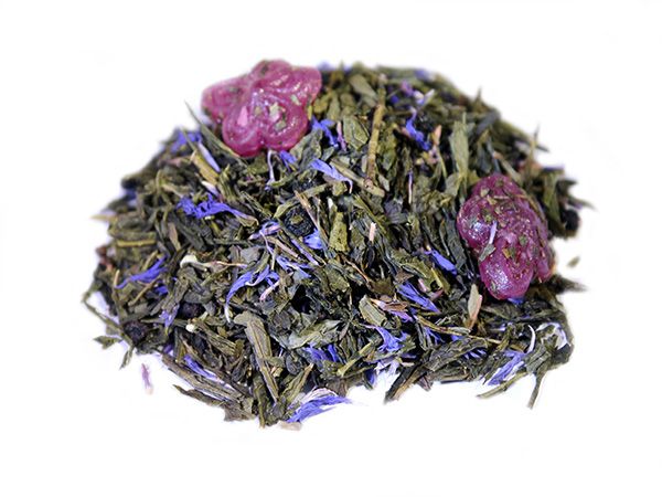 Ingredientes: Té verde, caramelos de violeta, grosella, pétalos de flores y aroma.