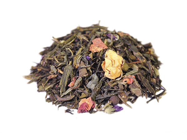 Ingredientes: China Sencha, Lung Ching, Yunnan, Pai Mu Tan (92%), capullos y pétalos de rosa, malvas, aroma.