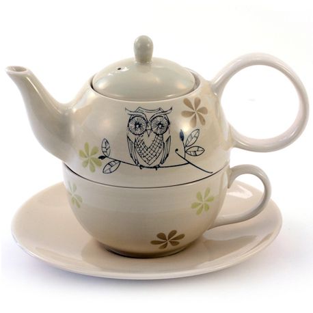 Bonito y útil juego Tea for one de 3 piezas: tetera, taza y plato.