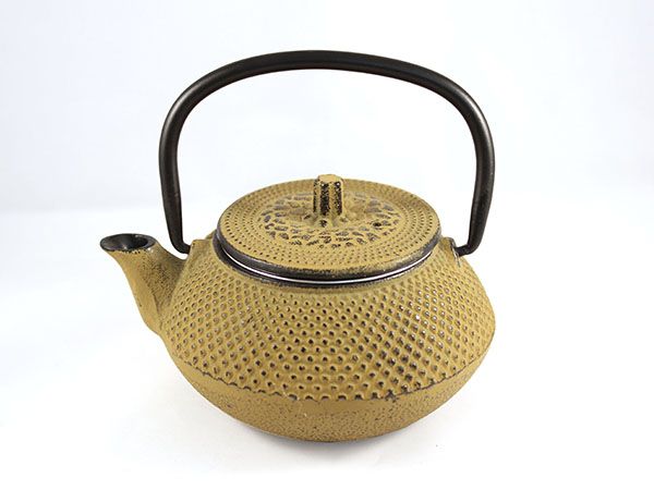 Tetera de hierro fundido (Tetsubin) de 0.3 litros de capacidad. Color mostaza. Dotada de infusor de acero inoxidable.