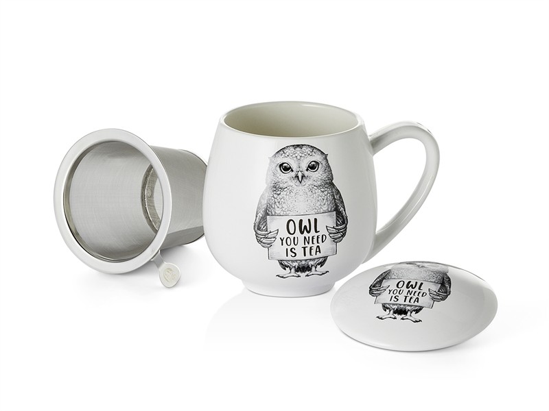 Divertida tisanera de porcelana de 0,35l. de capacidad, incluye infusor de acero inox y tapa.