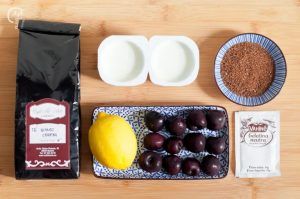 Lavar, deshuesar y picar en trocitos las cerezas. Colocar en un cuenco pequeño y añadir 1 o 2 cucharadas de azúcar moreno y el zumo de limón. Remover bien y dejar reposar.